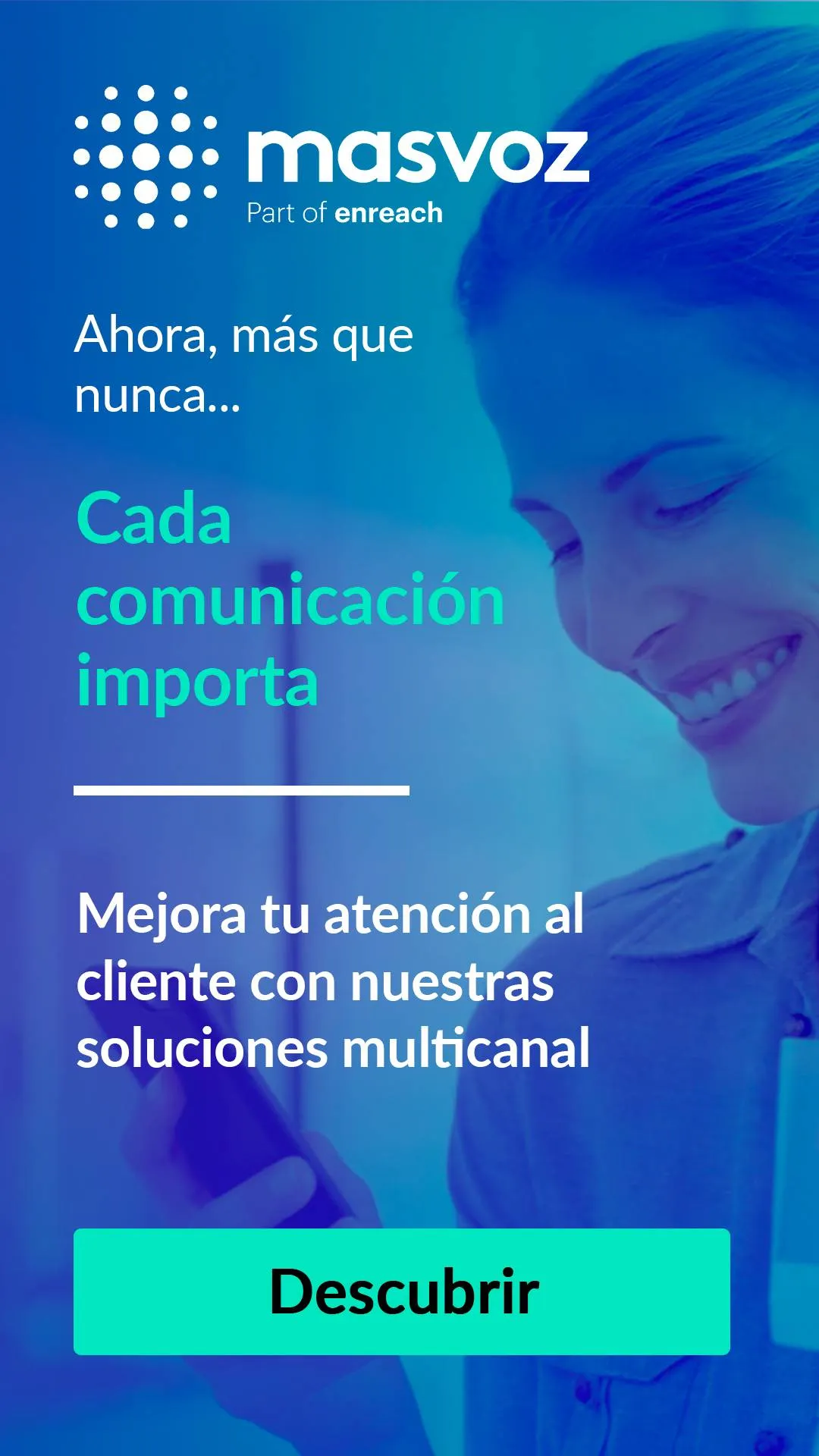 Experiencia: masvoz es un proyecto con más de 17 años, formado por un equipo de profesionales con amplia experiencia en el mundo TIC. Damos servicio a más de 1500 empresas como logística, bancos, seguros, comercio electrónico, telecomunicaciones y turismo a nivel nacional e internacional.Somos un proveedor registrado en la CNMC ( Comisión Nacional de los Mercados y la Competencia).